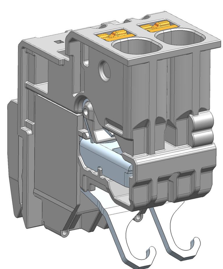 Złącza transformatorowe typu TKS firmy CONTA-CLIP zostały opracowane zarówno do bezpośredniego montażu na karkasach ze zintegrowanymi studzienkami montażowymi, jak i do zatrzaskiwania na aluminiowej szynie mocującej 10 x 2. Służą one do podłaczenia końcówek cewek transformatora do złącz śrubowych lub szybkozłączy wtykowych w celu podłączenia do urządzenia lub części systemu.